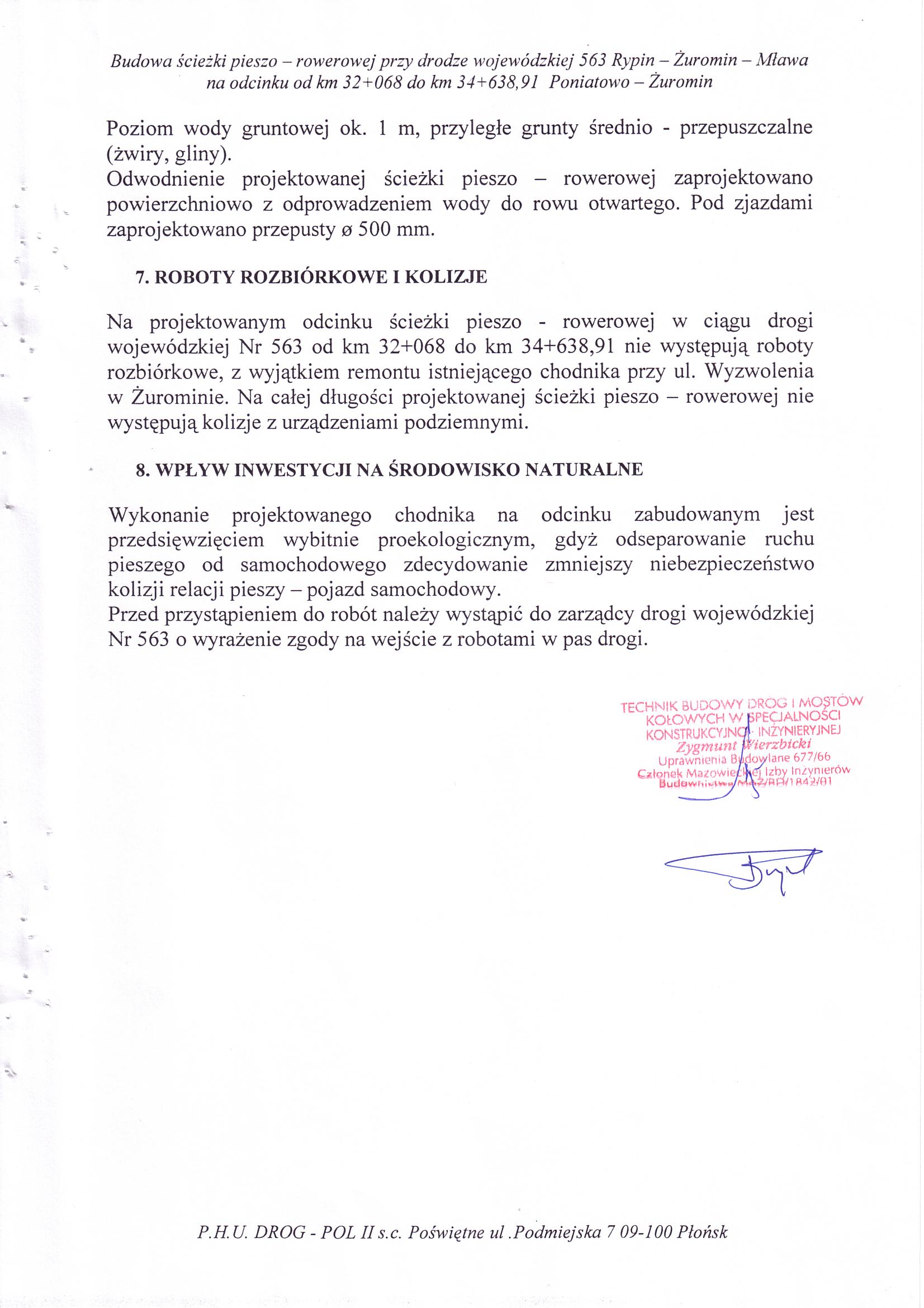 Budowa ścieżki pieszo – rowerowej przy drodze wojewódzkiej nr 563 Rypin – Żuromin – Mława na odcinku od km 32+200 do km 34+460 Poniatowo - Żuromin