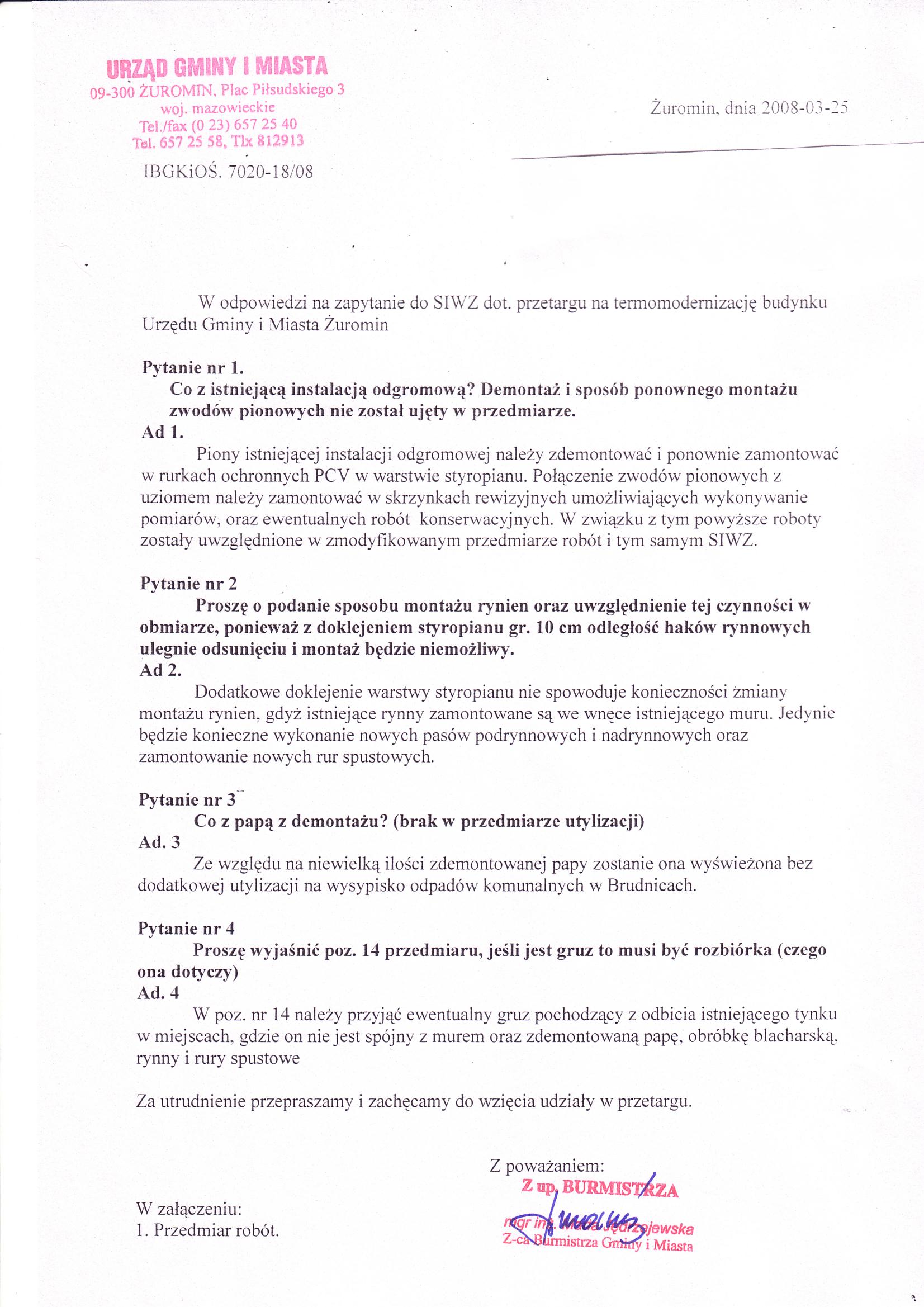 Przetarg nr 7 - Termomodernizacja budynku Urzędu Gminy i Miasta Żuromin