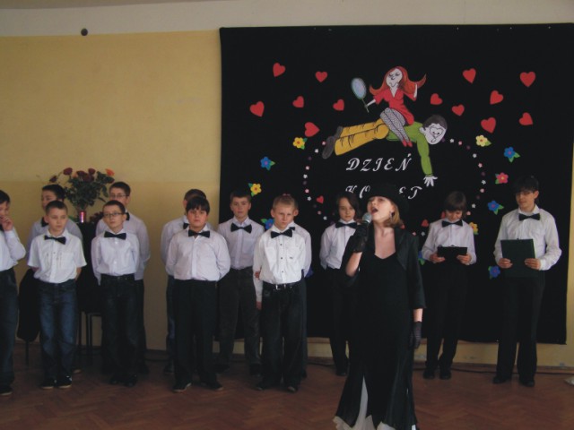 MIŁĄ NIESPODZIANKĘ WSZYSTKIM DZIEWCZĘTOM I PANIOM SPRAWIŁA GRUPA UCZNIÓW, PRZYGOTOWUJĄC CIEKAWY, PEŁEN CIEPŁA I HUMORU, PROGRAM Z OKAZJI DNIA KOBIET. ZAPREZENTOWANO GO W CZWARTEK - 5 MARCA.