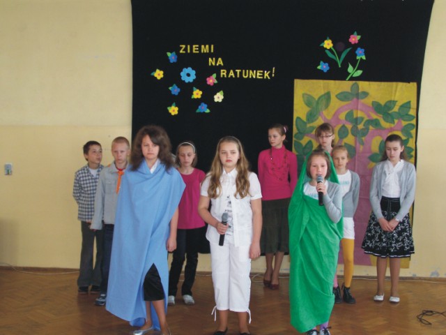 Przyczynom i skutkom degradacji środowiska naturalnego poświęcony był program artystyczny „Na ratunek Ziemi”, który uczniowie klas IV – VI obejrzeli w poniedziałek - 4 maja.