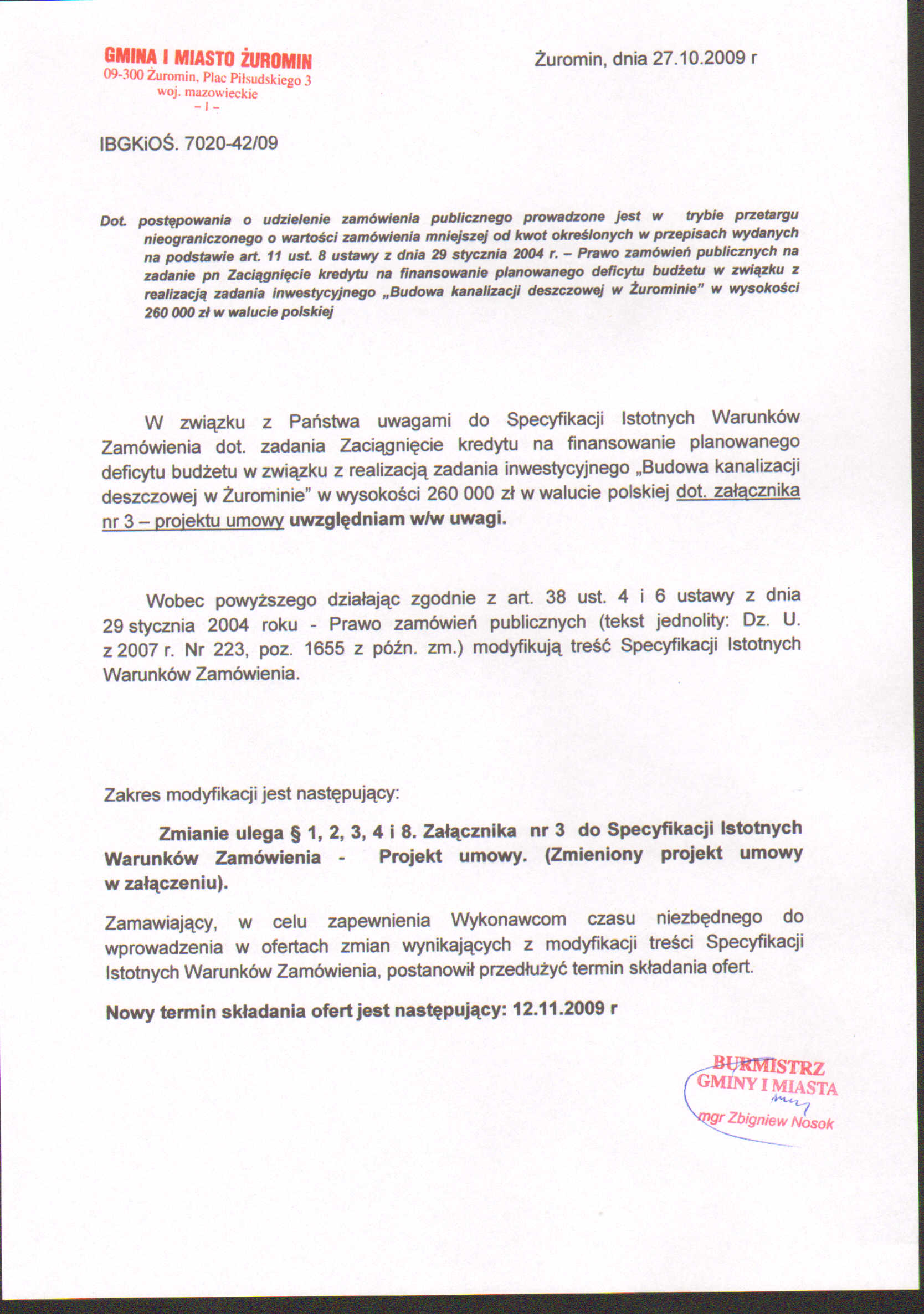 Przetarg nr 24 - Zaciągnięcie kredytu na finansowanie planowanego deficytu ...